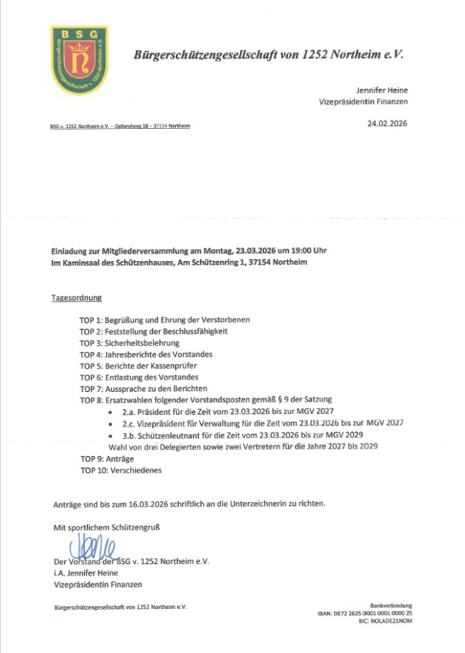 "Zurück zu den Wurzeln" lautete das Motto des St. Sebastianschmauses 2026. Wir sind überwältigt. Ca. 130 Personen haben den Weg ins unser Schießhaus gefunden, um mit uns den Re-Start dieser Veranstaltung zu feiern. Vielen Dank an alle Gäste und die Redner des Abends; BSG-Vizepräsident und Bürgermeister Simon Hartmann, Stadthauptmann und 1. stv. Bürgermeister Holger Lambrecht sowie Ex-BSG-Präsident Hans-Bernhard Heynold. Besonders bedanken möchten wir uns beim Festredner des Abends, den Chef der Staatskanzlei in Niedersachsen, Herrn Staatssekretär Frank Doods, der eine humorvolle Rede aus dem Leben eines Nds. Ministerialbeamten hielt.
